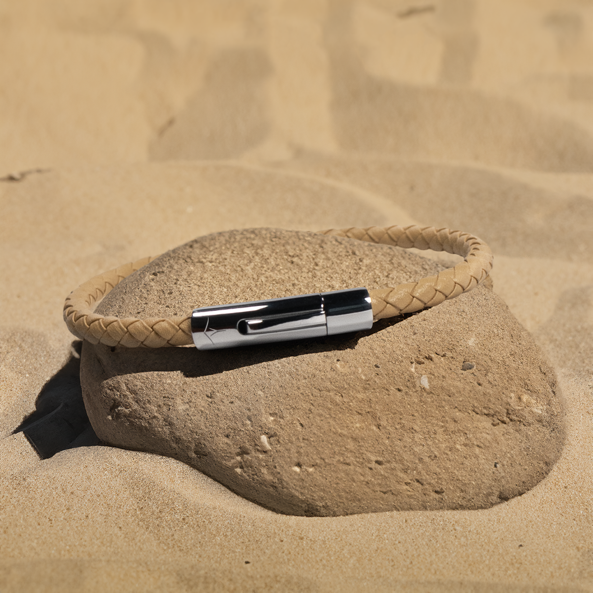 Sand grains beneath your feet, sunlight dancing across open skies—this bracelet captures the warmth of a perfect lake day. With sun-washed tones and natural textures, it reflects the calm of sand, shade, and summer air.